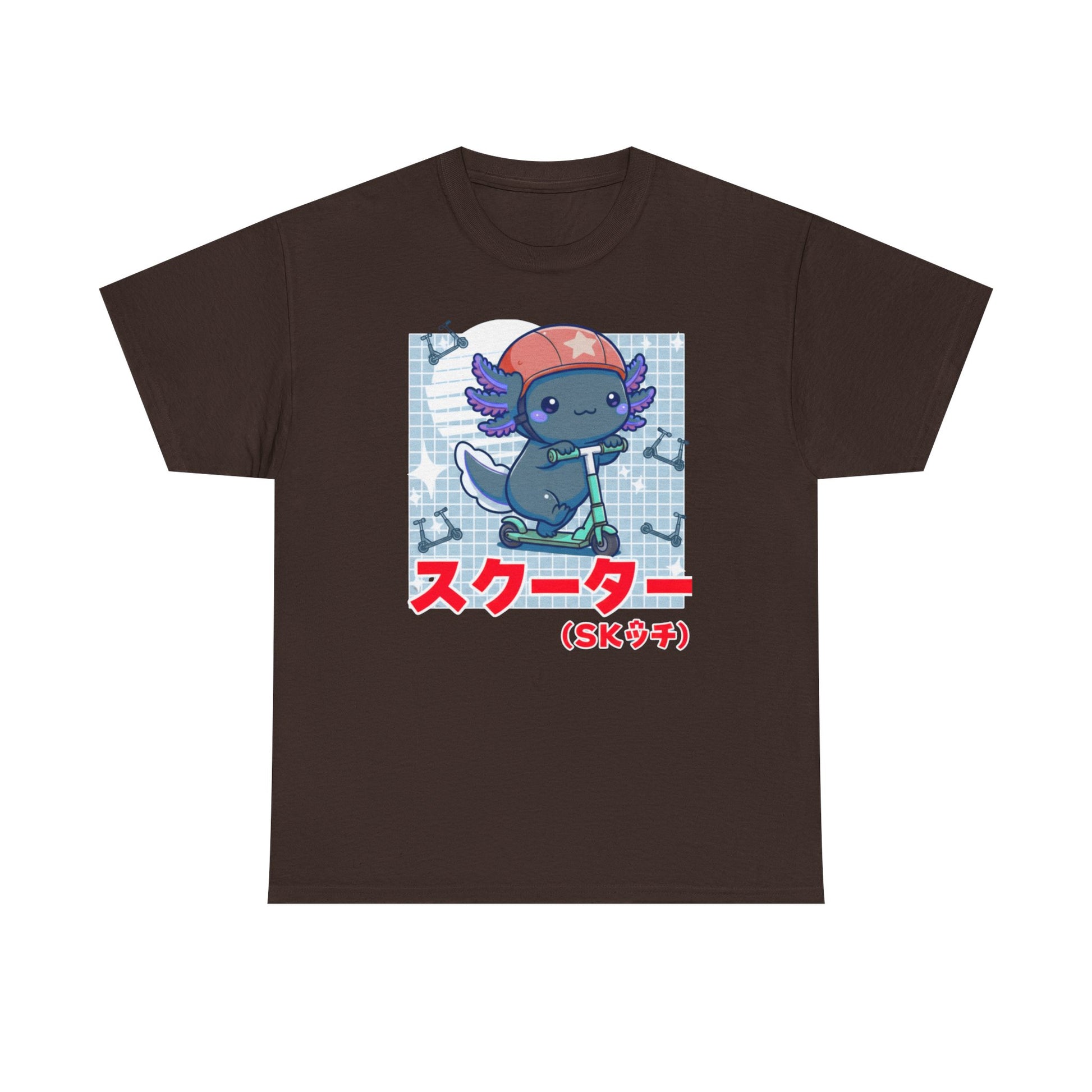 Axolotl Scooter T‑Shirt — Cute Kawaii Japanese Text Tee (スクーター)