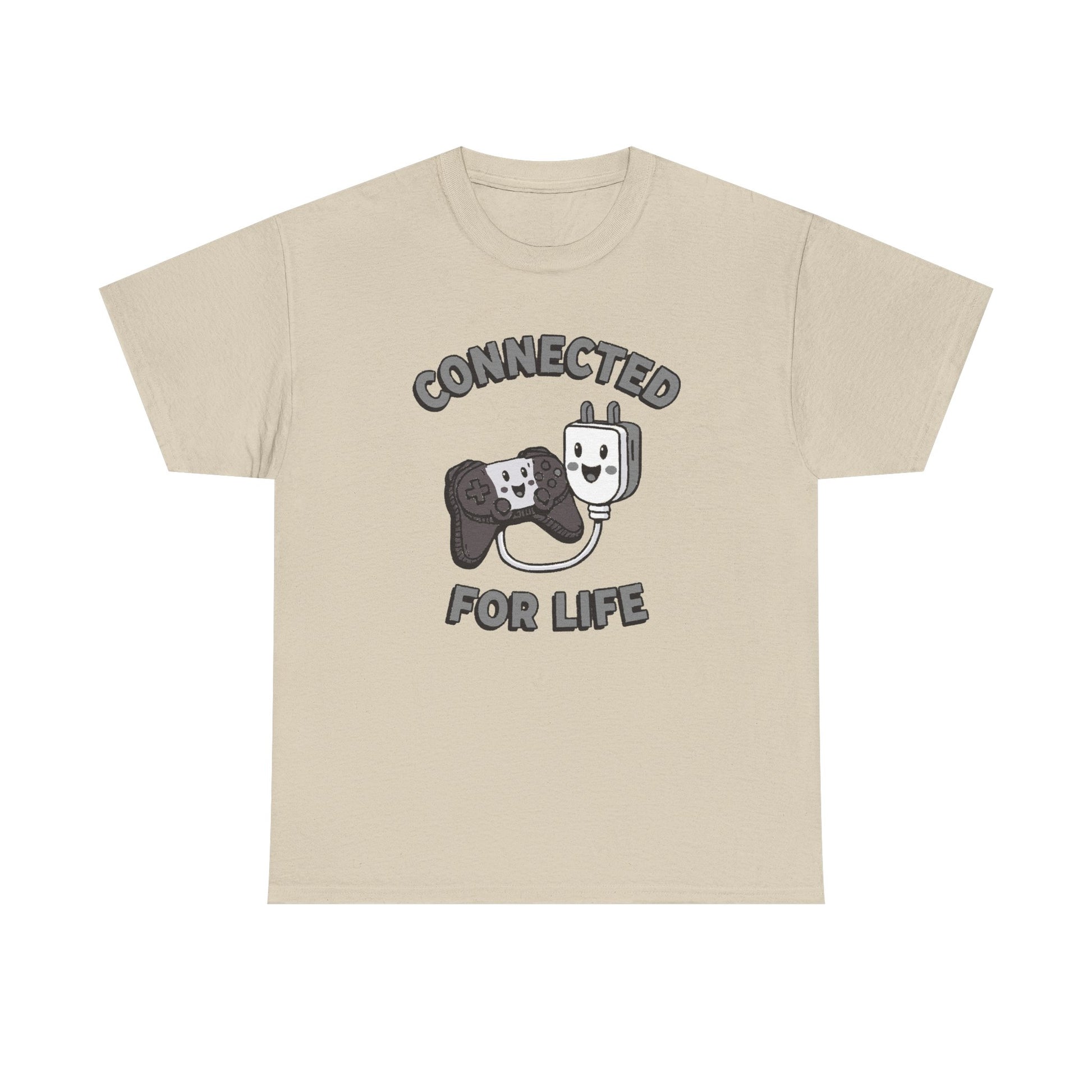 Soft, breathable classic tee with a playful ‘Connected for Life’ design — a retro controller and smiling charger cable curled together like old friends. The relaxed crew-neck silhouette and medium-weight cotton feel familiar from the first wear, while ribbed collar and shoulder tape keep the shape wash after wash. Wear it on casual days at home, during local game nights, or out with fellow retro-gaming friends to show a quiet, nostalgic sense of belonging.