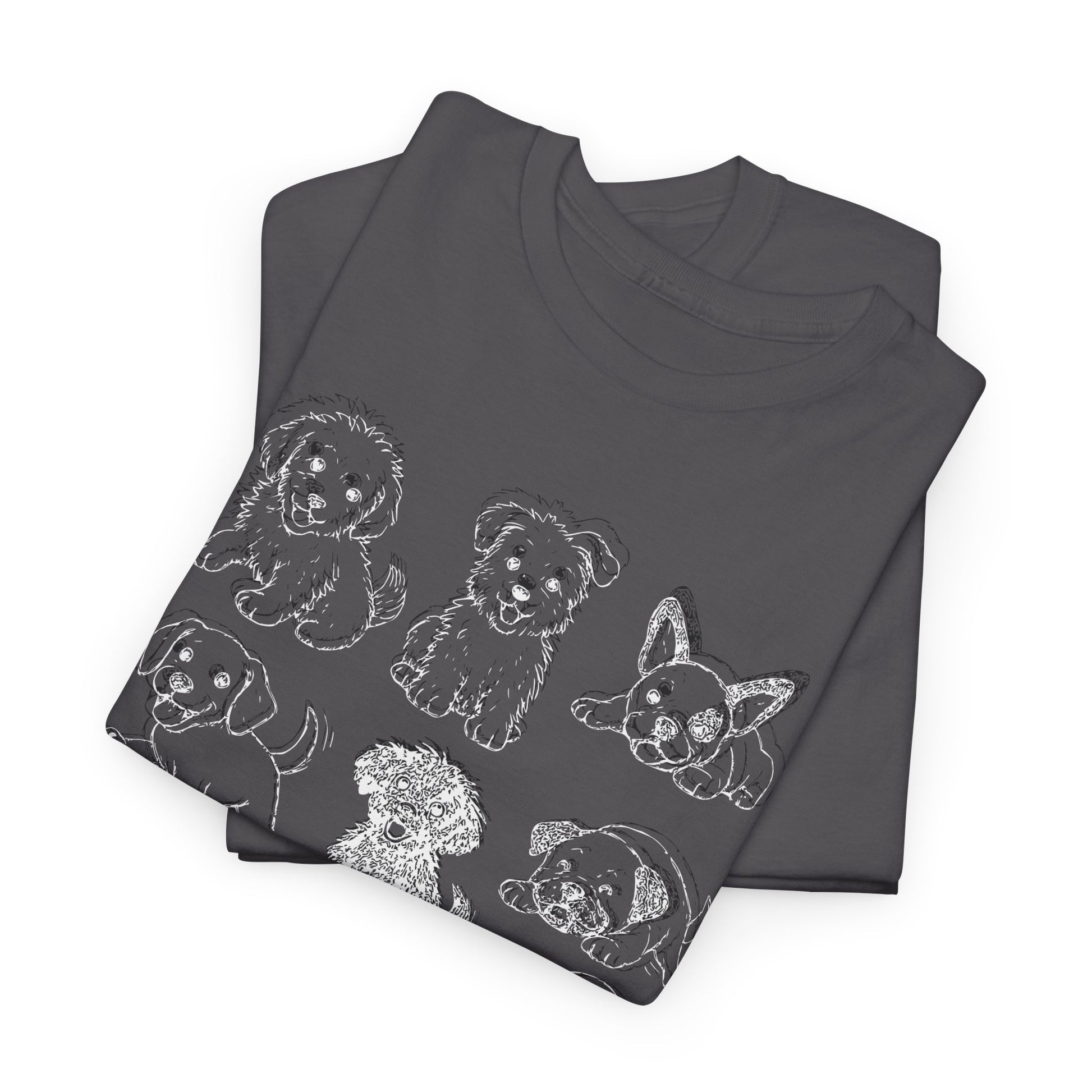 Cute Puppy Illustration Unisex Heavy Cotton Tee, Animal Lover Gift, Pet Owner Shirt, Casual Everyday Wear, Fun Gift for Dog Lovers