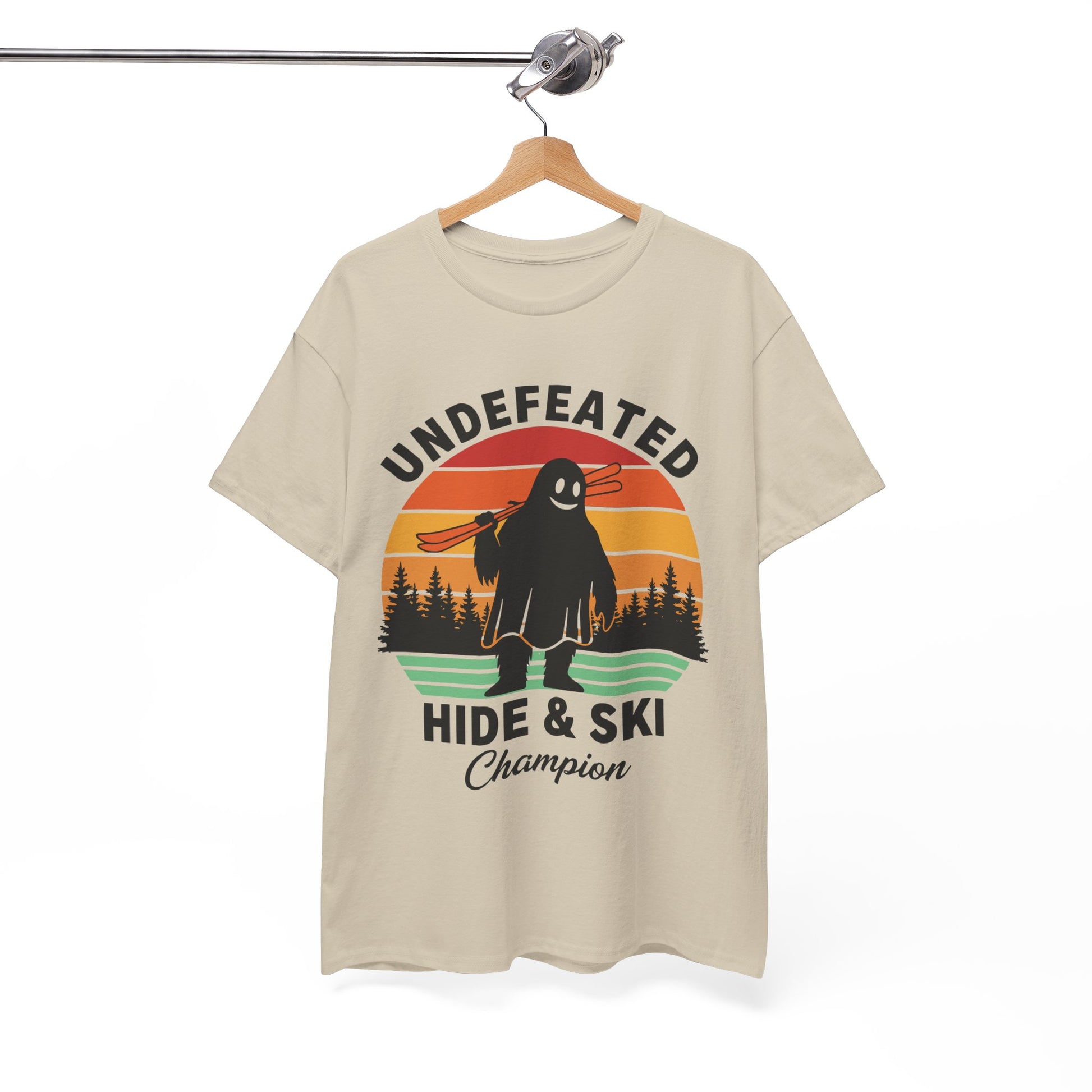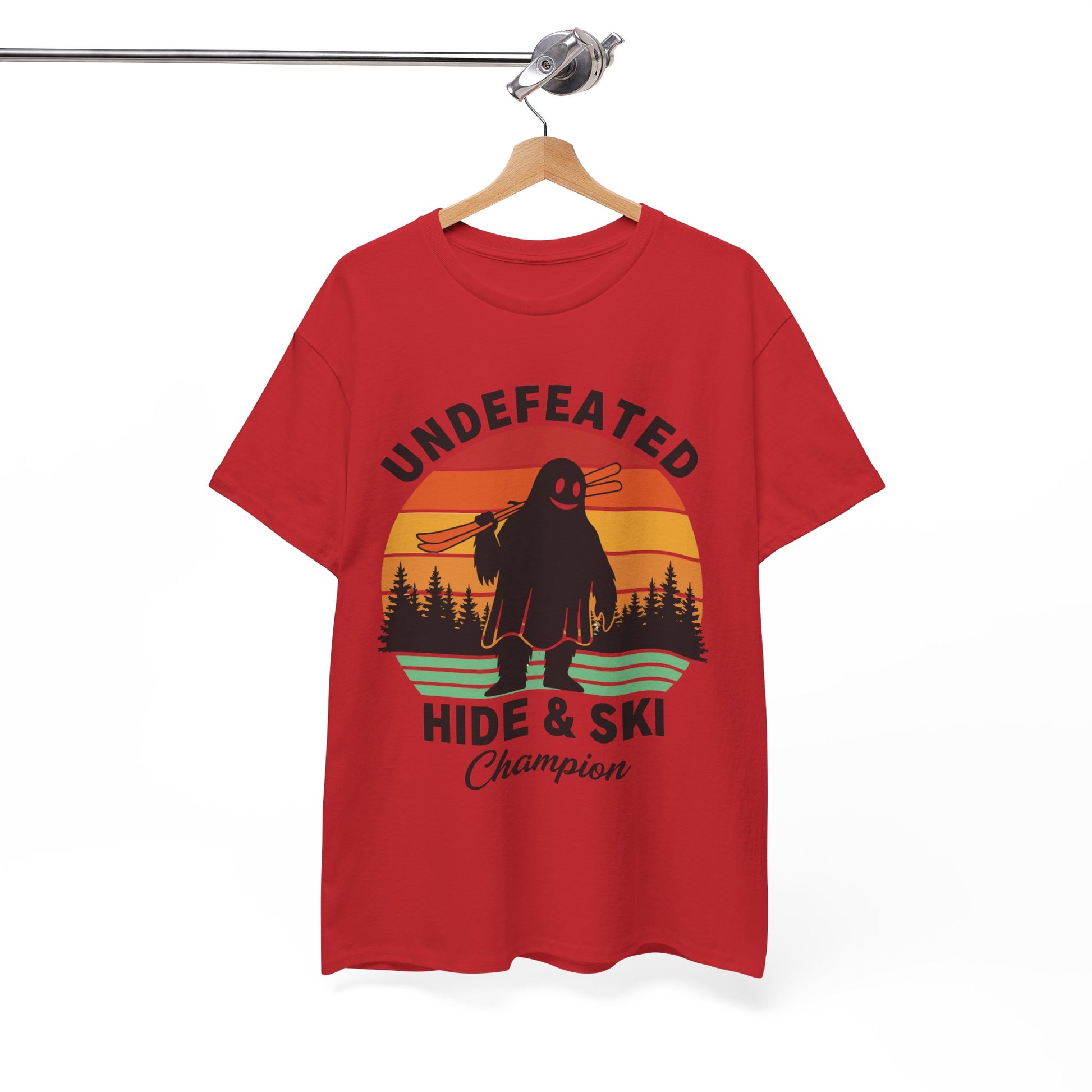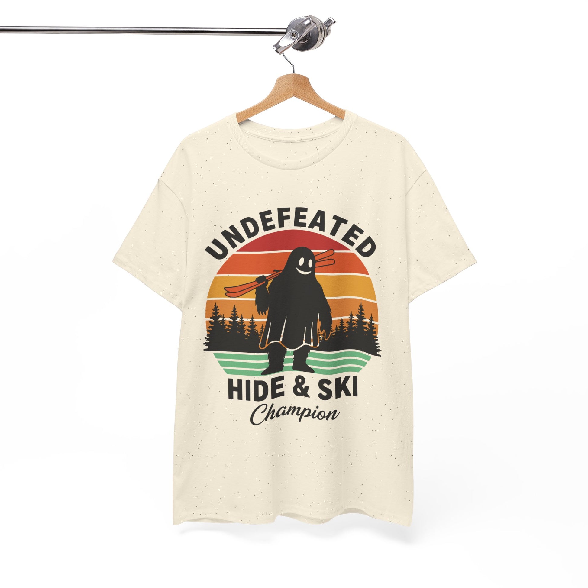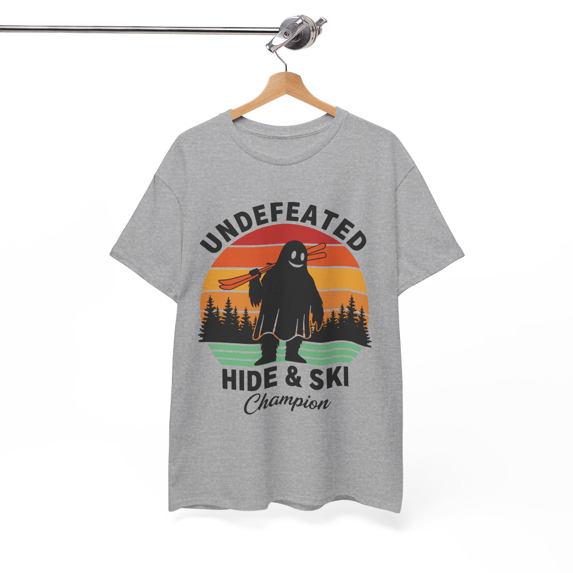 Hide & Ski Champion T‑Shirt — 'Undefeated' Vintage Skiing Graphic Tee