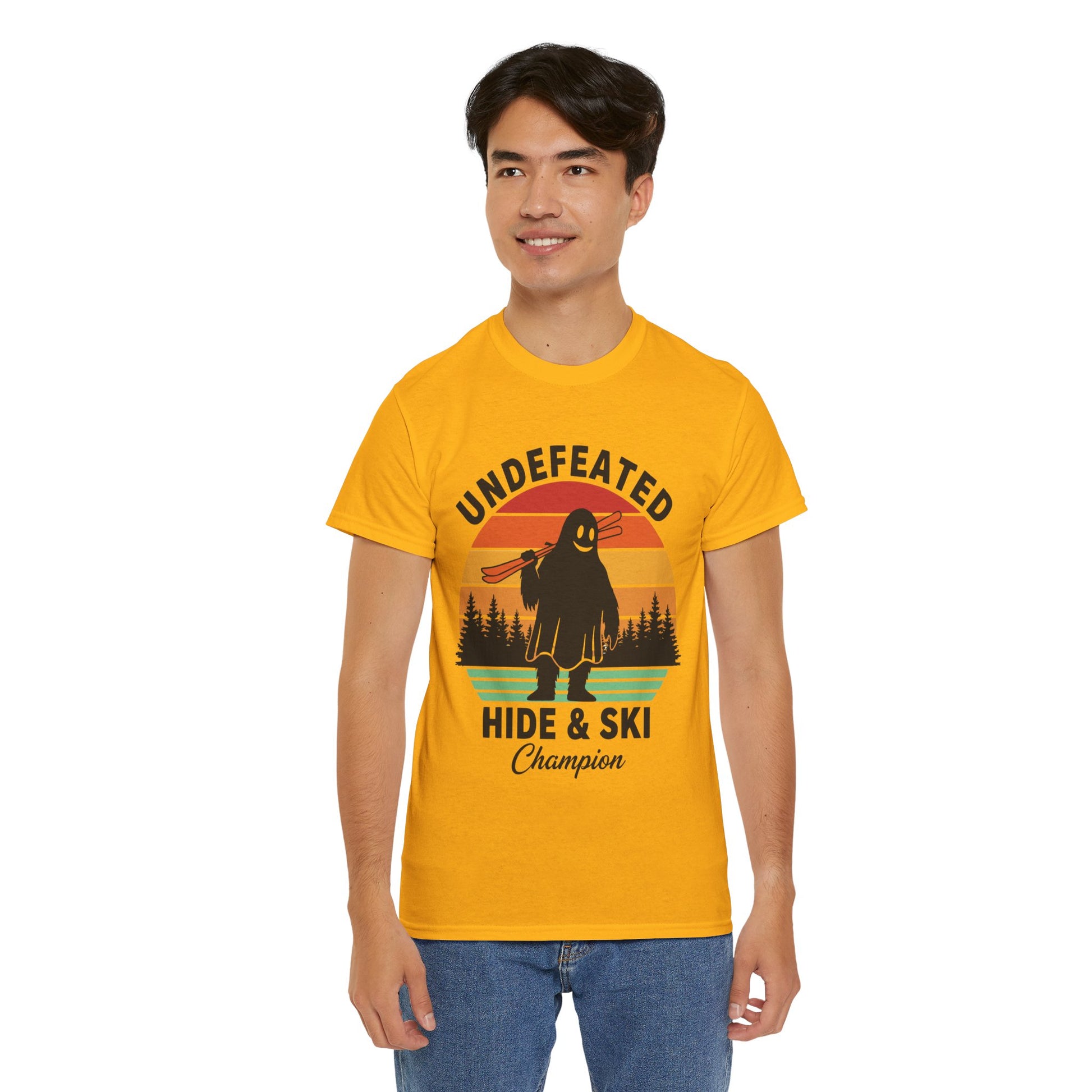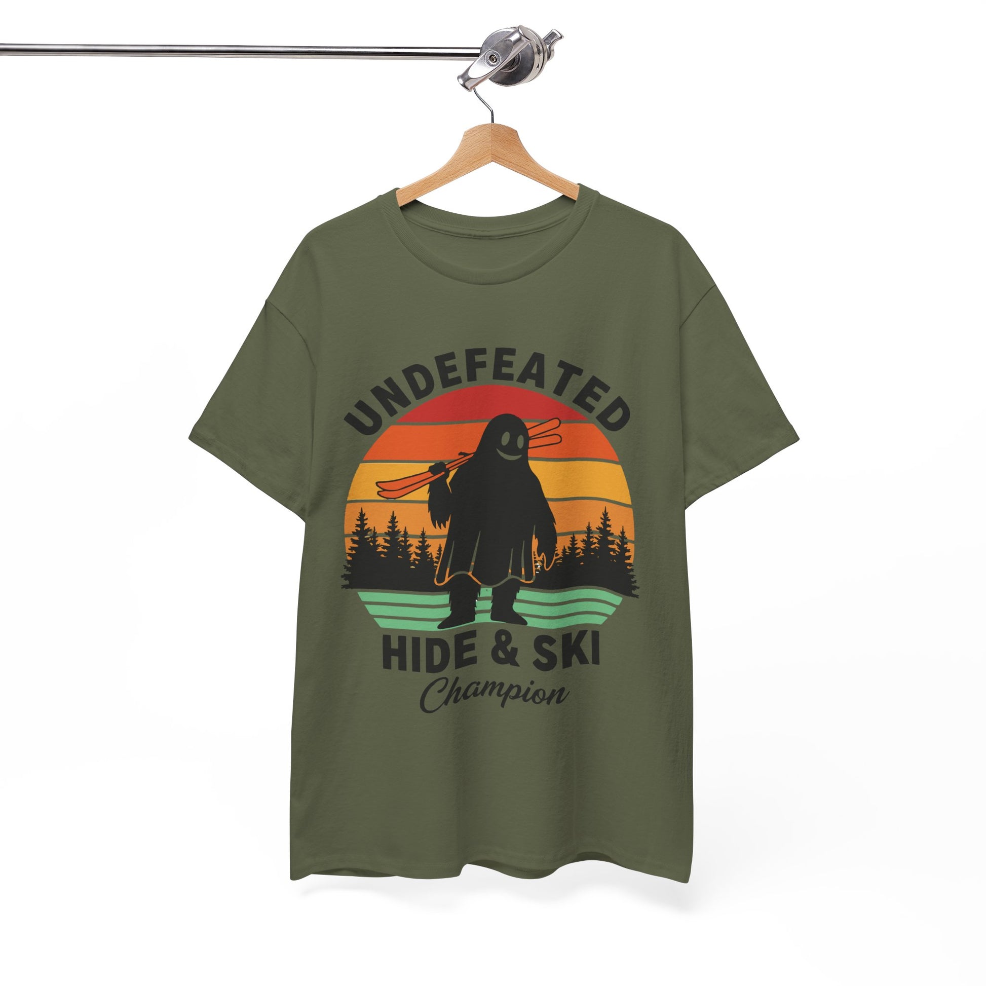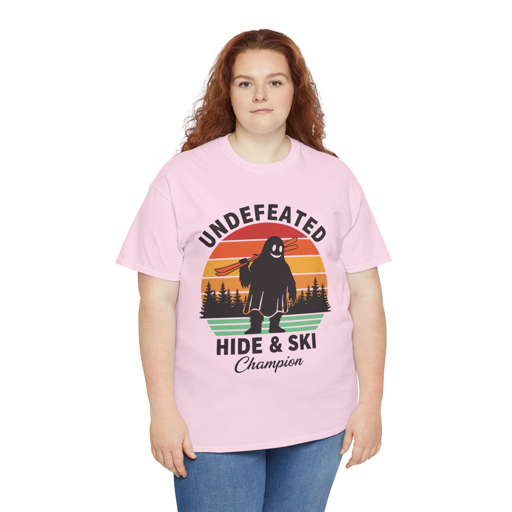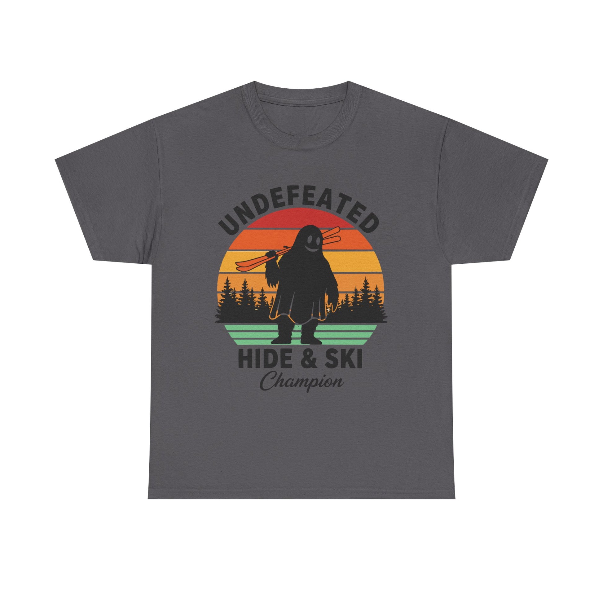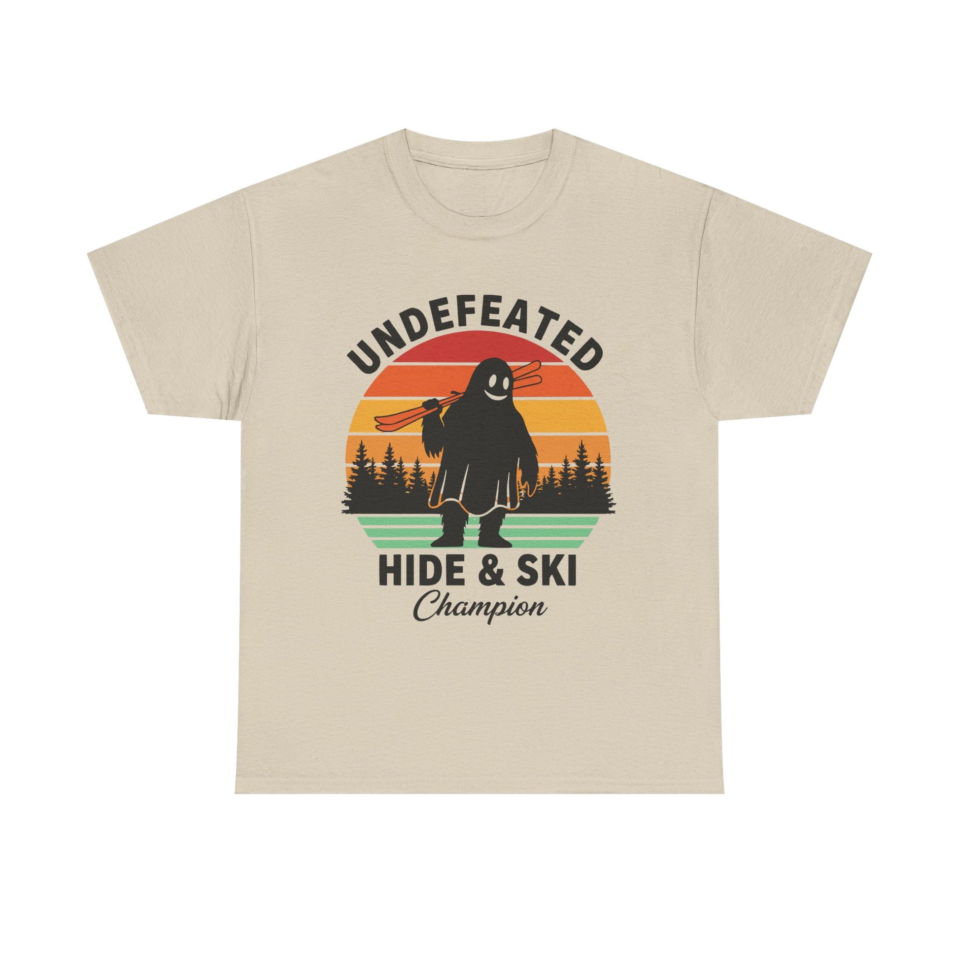 Hide & Ski Champion T‑Shirt — 'Undefeated' Vintage Skiing Graphic Tee