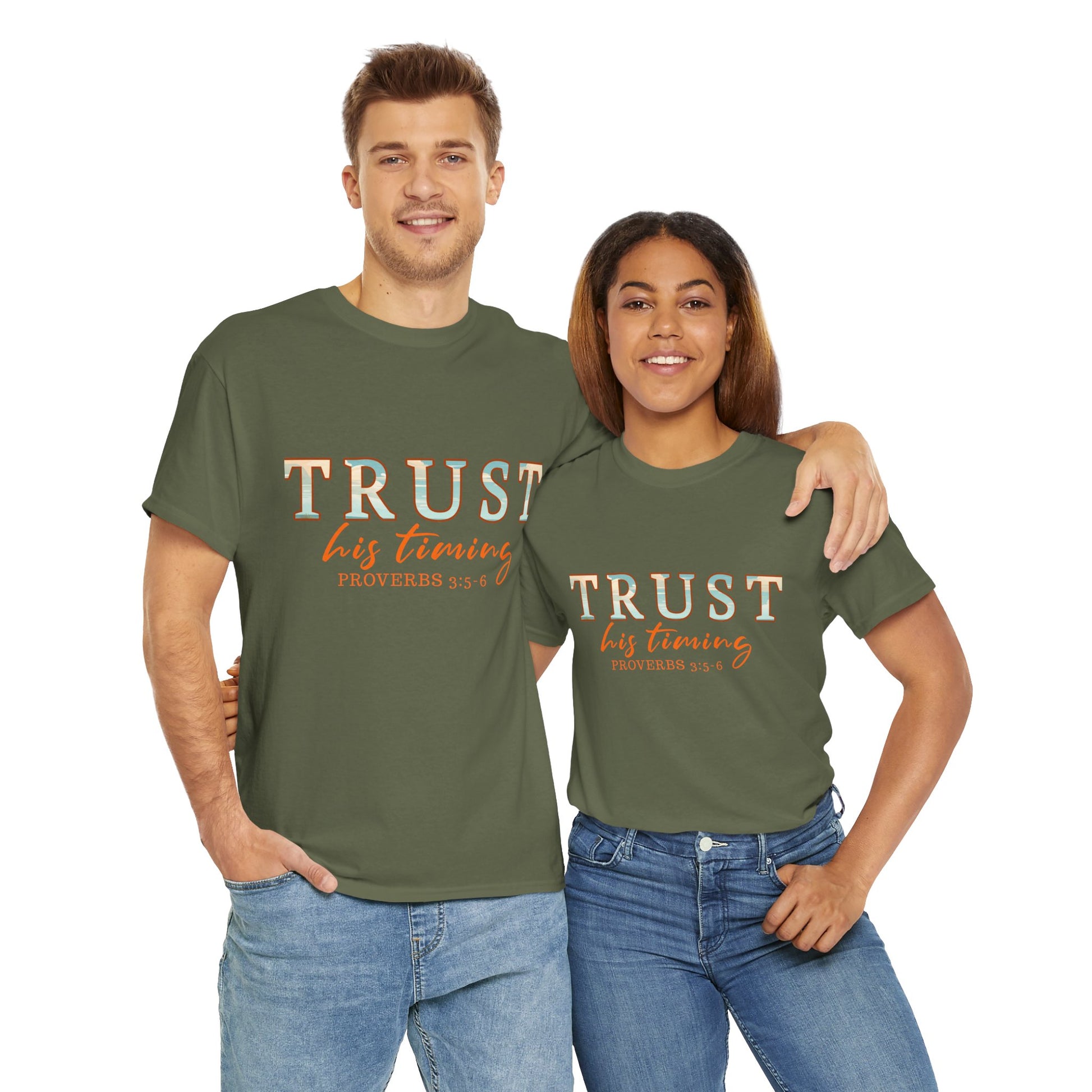 Inspirational Unisex Heavy Cotton Tee - 'Trust His Timing' Proverbs 3:5, Motivational Shirt, Gift for Friends, Faith-Based Apparel, [...]