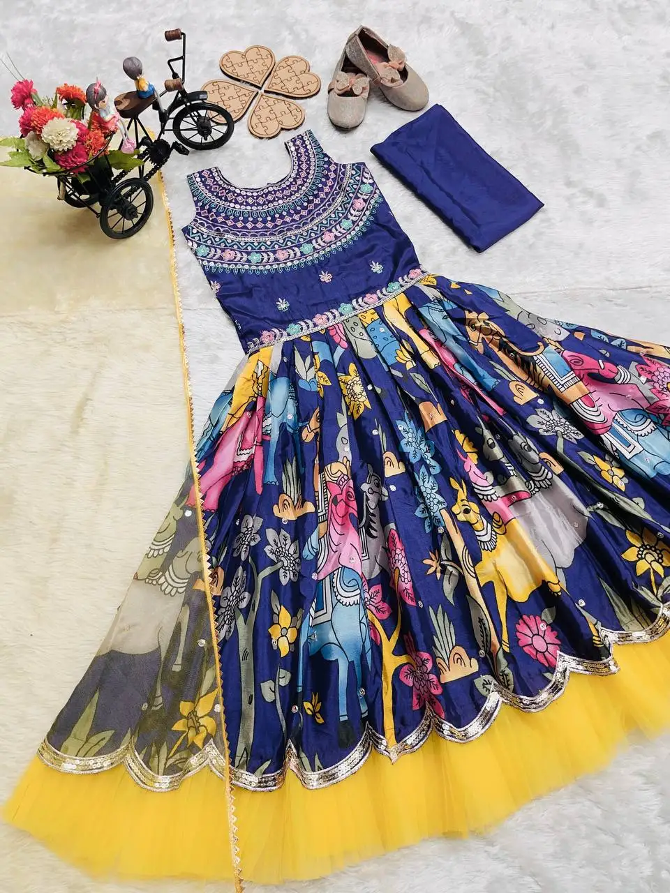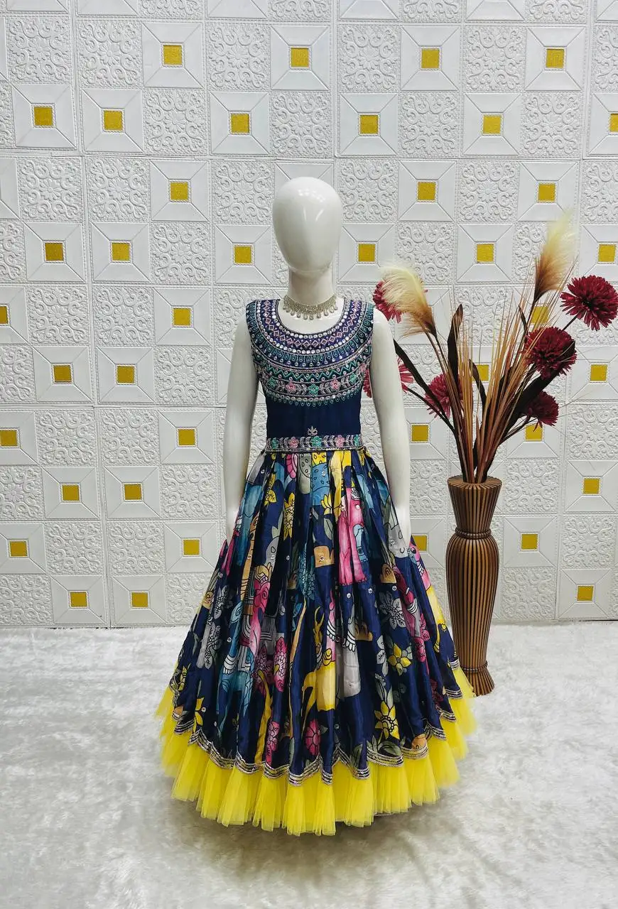 Launching New Collection Beautiful Heavy Chinon With Embroidery Sequence Work Kids Gown Set