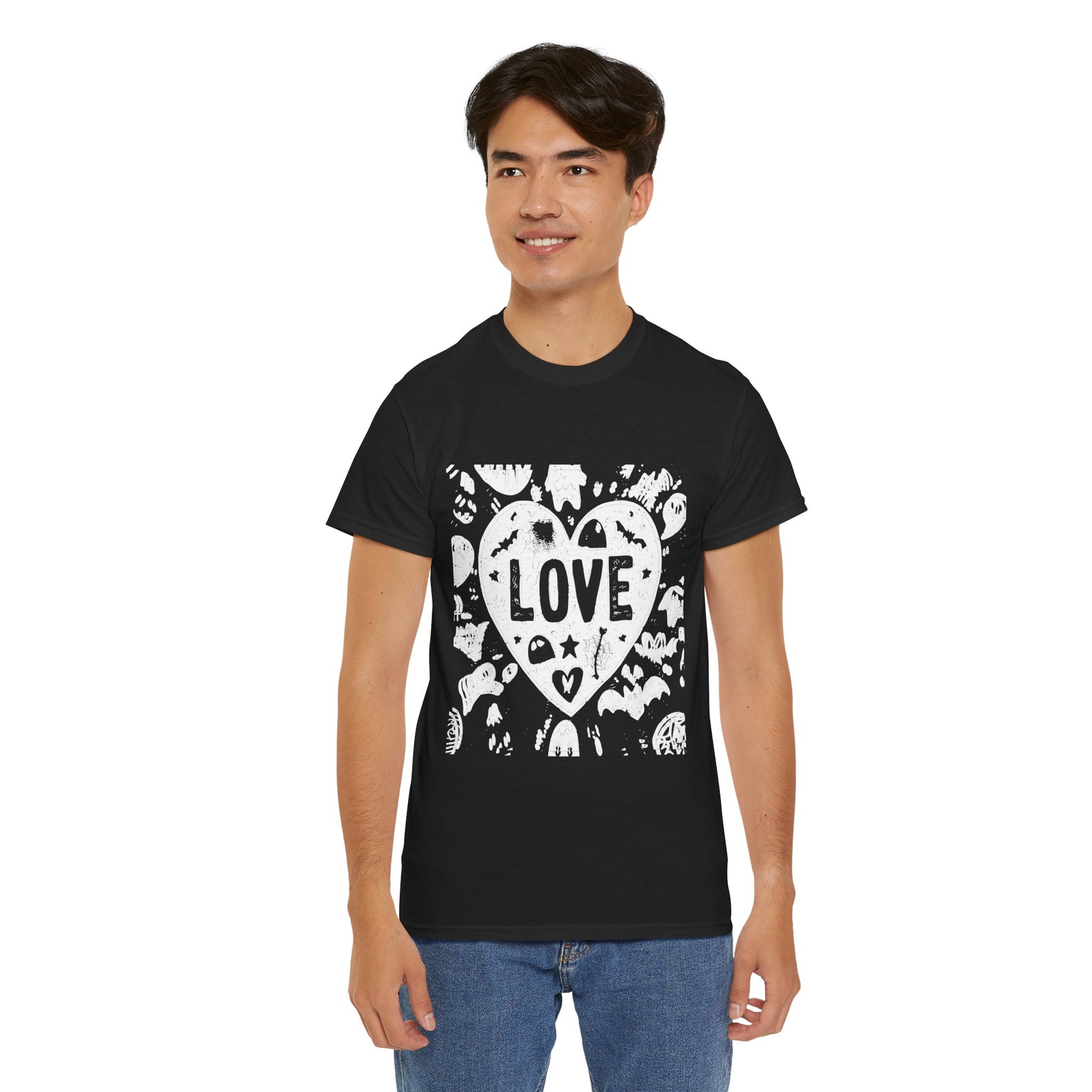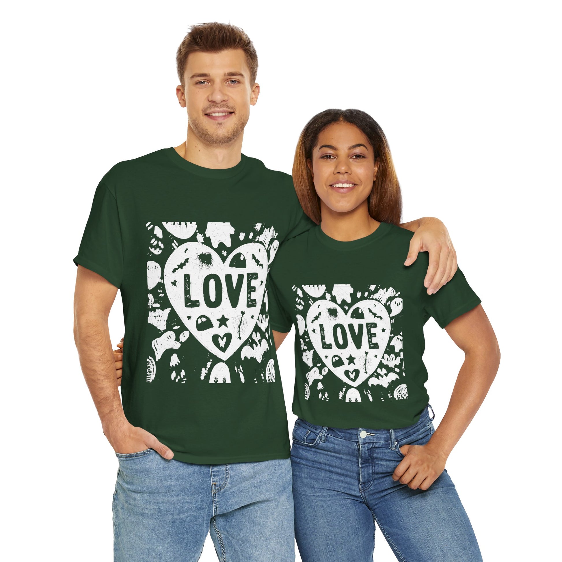 Love Heart Graphic Unisex Cotton Tee, Casual Wear, Gifts for Couples, Valentine's Day, Everyday Comfort, Trendy Style