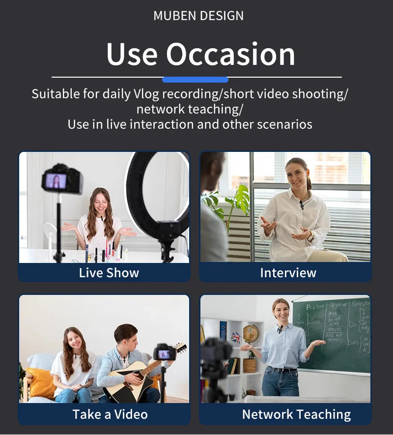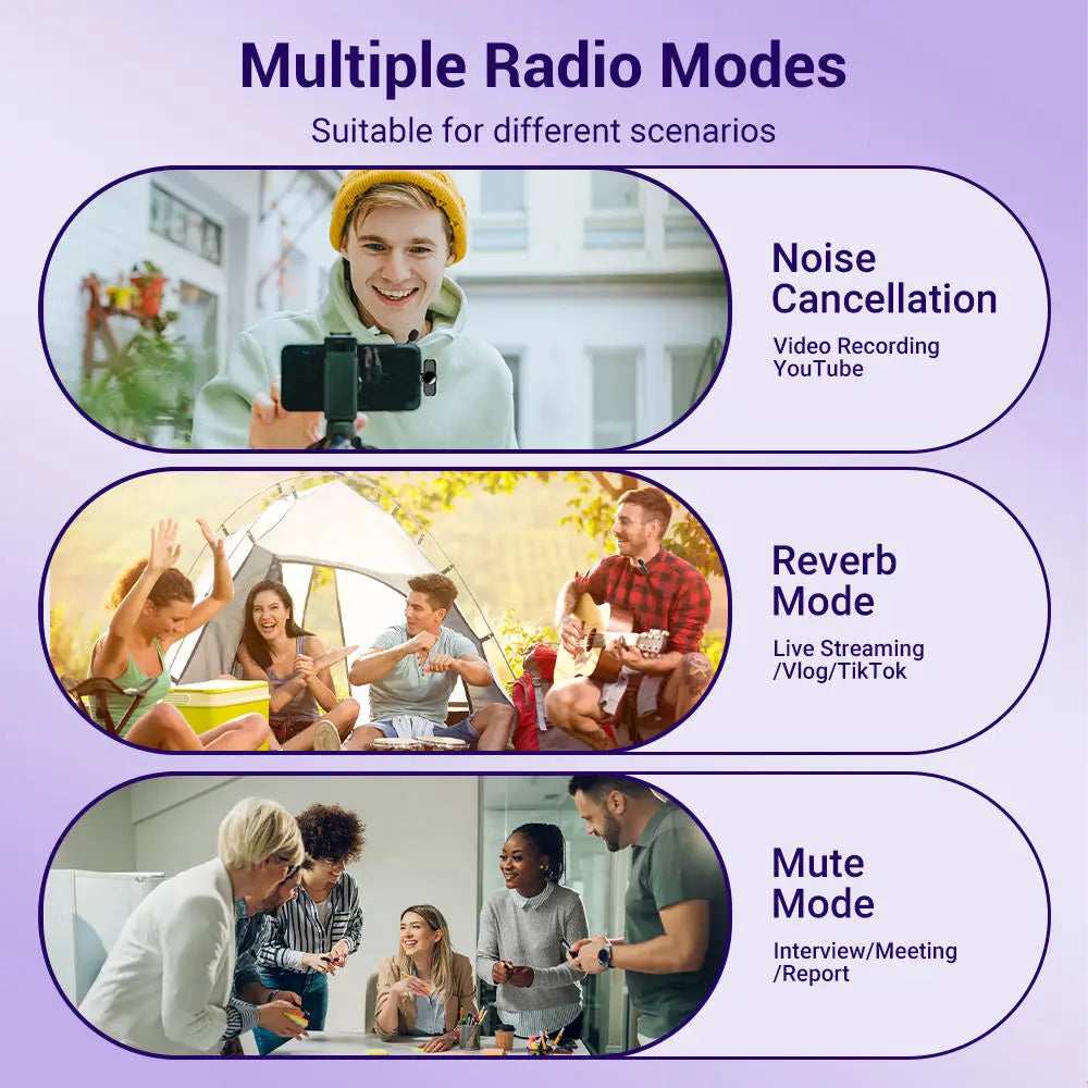 Wireless Lavalier Microphone Mini Portable Smart Noise Reduction Video Recording Microphone for iPhone Android Lapel Mic